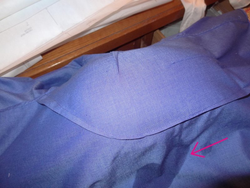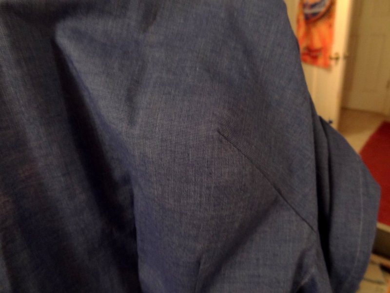 I began with the shirt inside out. See how well the point of the shaped dart flattens onto the ham's surface? Goodbye, wrinkled nipple look!
