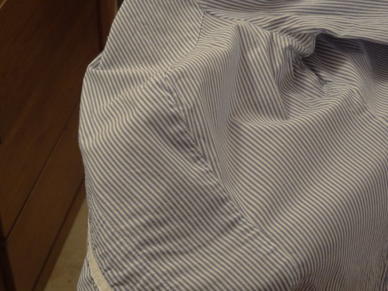 Ironing a Campbell & Kate L-size shirt, like the blue 8L below, can be especially hit-or-miss. That's because they have "shaped" bust darts that are great at accommodating an H cup but not so great at accommodating a flat surface.